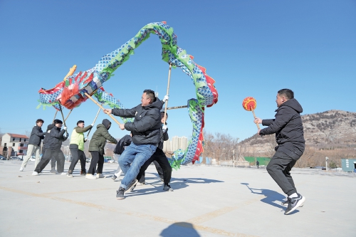 “二龙戏珠”“二龙盘缠”“巨龙腾飞”“盘龙卧海”“青龙过桥”……“巨龙”腾空,在张连水和队员手中上下翻飞,十分威武。在济南市市中区兴隆街道,有一支家喻户晓的舞龙队——兴隆舞龙队,距今已经有200多年的传承历史,68岁的张连水是这支队伍的领头人,也是济南兴隆舞龙的第十代非遗传承人。张连水介绍,舞龙技艺起初来源于传说中的“青龙大战蜘蛛精”的故事,许多动作如“青龙过桥”“龙出洞”“龙盘柱”等灵感都来自于此。“兴隆舞龙在200多年的发展历史中,逐渐形成独特的‘九节龙’样式。”2024年春节期间,兴隆舞龙队有近60场演出。“中华民族是龙的传人,希望舞龙这项非物质文化遗产能够在长久的传承中,发扬好龙的精神。”张连水自豪地说。
