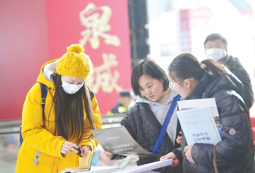 3月2日,市民在2024齐鲁(济南)春季房地产展示交易会现场挑选心仪的房源。(本报记者 崔健 摄)