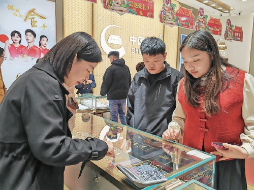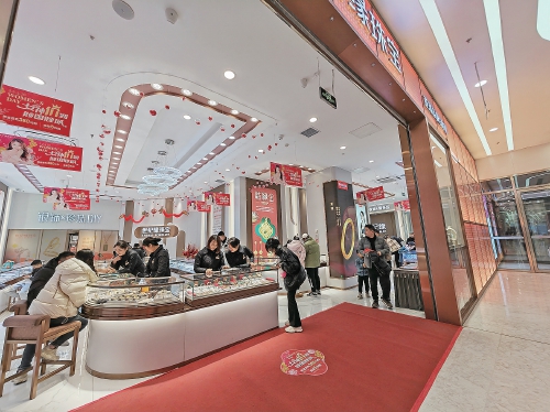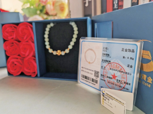 “这是我给女友买的礼物。”3日,市民张先生正在柜台选购一款“遇见国潮”黄金项链。