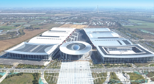 济南黄河国际会展中心宛若一颗明珠镶嵌在黄河岸边。(本报记者 崔健 摄)