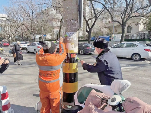 乱张贴“非法小广告”一直是城市管理的难题顽症,不仅破坏干净整洁的生活环境、影响市容市貌,而且有些小广告还涉嫌发布虚假信息甚至诈骗信息,危及广大群众的生命财产安全。槐荫区城管局部署安排与道路保洁捆绑,组织道路保洁员对自己保洁区域内的“非法小广告”予以清除。各执法中队深入到辖区各主次干道、背街小巷开展巡查,对墙体、公共市政设施等存在的各类乱贴乱画小广告现象进行调查取证,并责令当事人接受调查处理。执法人员在依法查处乱贴乱画小广告的同时,拿起清理工具,对乱贴乱画乱写的小广告予以清除。