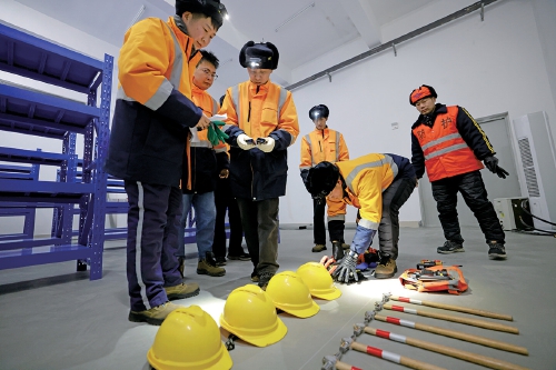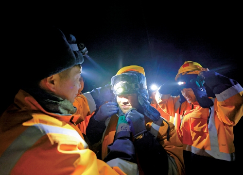为了抵御桥上风寒,作业前桥隧工们做好保温措施。