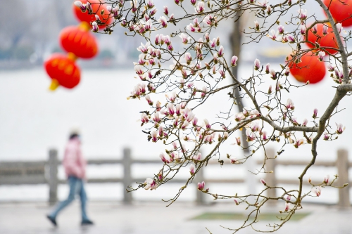 当下的泉城,春天的气息逐渐浓郁,在大明湖公园北岸的绿化带内,一缕花香飘来,绿化带里的两棵白玉兰在春风里绽放。玉兰花大多在2月底或3月初开花,花期大概1个月。 (王锋 摄)