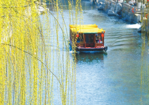 3月12日,济南护城河畔春意盎然,垂柳如帘,泉水如玉,市民们漫步泉边,沉浸在春日画卷中,享受明媚的春光。