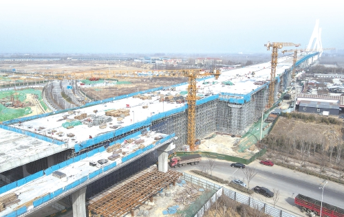 据了解,G104京岚线济南黄河公路大桥扩建工程是连接济南新旧动能转换起步区与老城区的南北向主干道,全长7.748公里。该项目的建设将有效改善济南市区与黄河北部地区的交通出行条件,优化跨黄河桥隧布局。桥梁还预留了轨道交通7号线通道,这也是山东首条穿越黄河的轨交线路,同步实现从老桥单一交通方式到公轨两用通行能力升级,满足高速公路、城市快速路、城市主干路三者之间的交通转换需求。