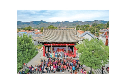 长清孝里民间剧团在长城脚下鸣锣巡演。