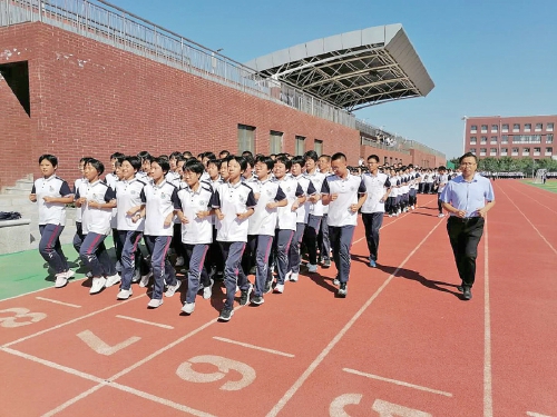 大课间时,历城二中师生集体跑操。走出教室、回归操场