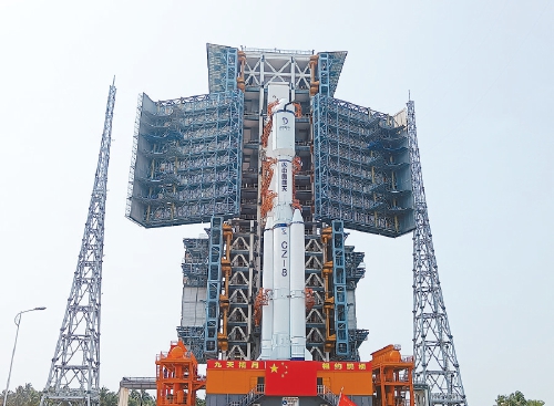 3月17日,探月工程四期鹊桥二号中继星和长征八号遥三运载火箭组合体转运至发射区。国家航天局消息,3月17日,探月工程四期鹊桥二号中继星和长征八号遥三运载火箭在中国文昌航天发射场完成技术区相关工作,星箭组合体垂直转运至发射区,计划于近日择机实施发射。 (新华社发)