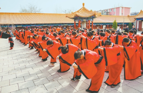 3月17日,山东省实验中学国际部高三60余名学子迈入济南府学文庙,迎来具有中国传统之美的成人仪式。