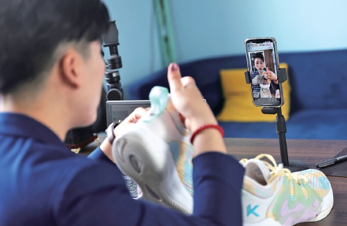 张磊磊开直播,为员工和加盟商进行线上培训。