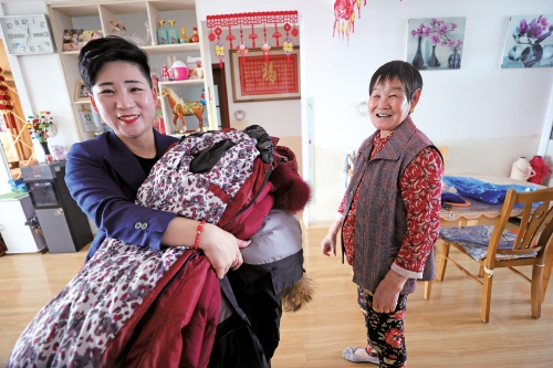 张磊磊长期为老人洗衣送衣,相处得如同一家人。