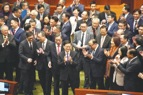 李家超表示,今日是香港的历史时刻,是特区第六届政府和第七届立法会终于共同完成光荣使命的历史时刻。香港基本法第23条立法的宪制责任和历史使命终于完成,国家安全得到有效保障。