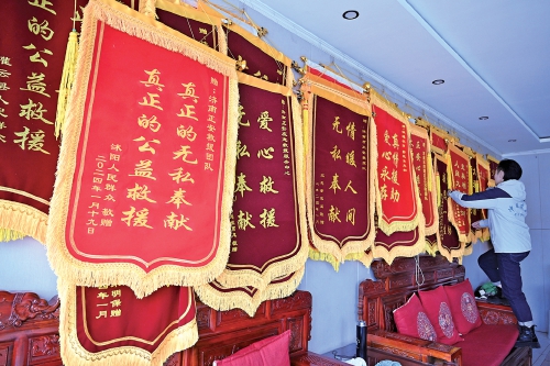 柳冲办公室里的锦旗里里外外摞了好几层。