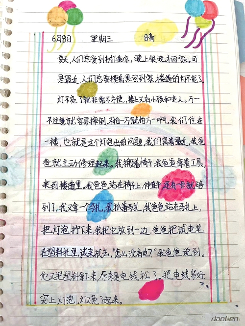 新苑小学学生续写的“雷锋日记”。