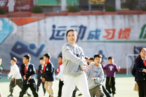 结束采访,当记者准备离开学校时,又被操场上欢快的旋律吸引住了。“90后”体育教师徐飞正带着二年级学生学习八段锦韵律操。原来,徐飞在除夕夜观看春节联欢晚会之后,就有了为学生编排一段八段锦韵律操的想法。开学后,她和几位体育组同事经过研究和商讨,最终选定了一首民族风格的音乐,由健美操专业毕业的徐飞为孩子们编排了简单易学的八段锦韵律操。