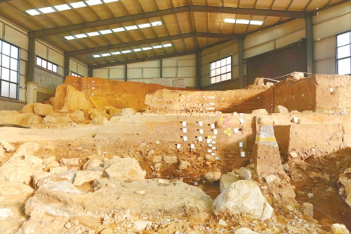山东沂水跋山遗址8米厚的地层堆积。(新华社发)