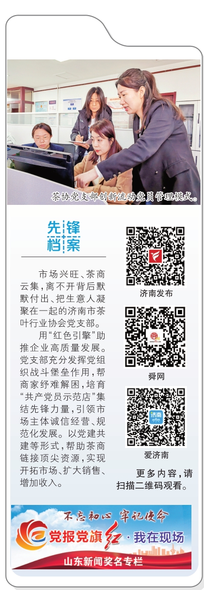 “我是一名流动党员,经常福建茶厂、济南店铺两头跑,但得到党支部的教育和关心一点儿也不比别人少。”党员郑翔龙说,支部始终惦记着自己,让他深切体会到,“济南这里不仅是谋生的地方,还是我们的家。”(本报记者 孙慧娟 张敏实习生 熊贝贝)