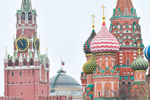 这是3月24日在俄罗斯莫斯科拍摄的降半旗的克里姆林宫。(新华社发)