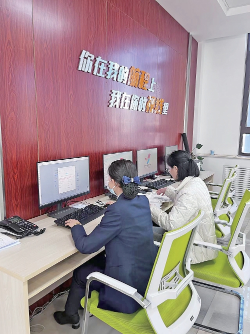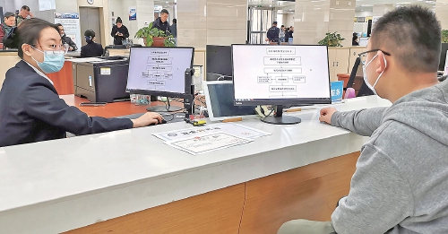 历下区行政审批服务局工作人员向办事群众介绍“无感审批”业务流程。 (李冬阳 摄)