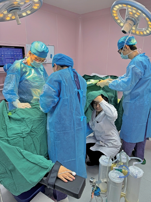 与此同时,相关科室启动绿色通道、应急机制。当时妇产科手术室已经排满,他们推迟了一台非紧急手术空出台位,消毒、麻醉等各环节无缝衔接。