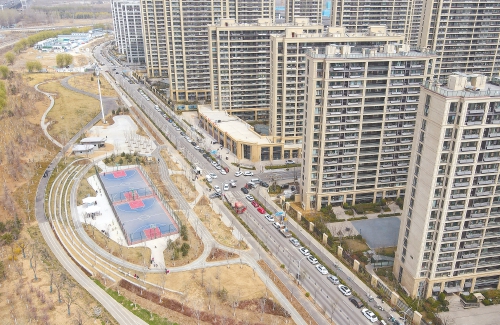 近日,在济南青岛路西段北侧,一座市民“家门口”的环形社区景观公园——春风公园已呈现新容。据了解,春风公园宽度60米-80米,规划长度约2.5公里,内部规划设置骑行车道、篮球场地、慢跑道、庆典广场等设施和健身区域,成为紧邻大型社区的绸带形景观带,也是继腊山河景观带、张庄机场文化公园后,西客站片区又一座南北狭长形景观公园。 (本报记者 崔健 摄)