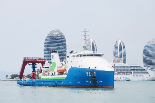 3月28日,“探索一号”科考船缓缓驶入三亚港。当日,“探索一号”科考船搭载“奋斗者”号全海深载人潜水器返回海南三亚。此次科考历时50天,顺利完成中国-印度尼西亚爪哇海沟联合深潜任务。 (新华社发)