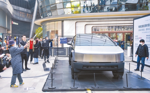 继在我国部分大城市引爆热点后,特斯拉生产的赛博越野旅行车近日来到济南,在泉城路一商场门前开启巡展。这款看起来像是科幻电影道具的“明日之车”,吸引了不少市民进入展区内,近距离感受其前卫设计。