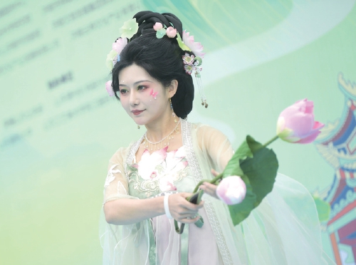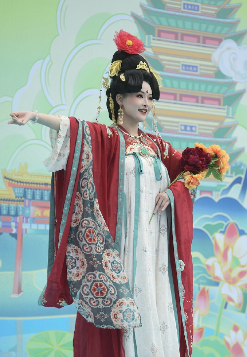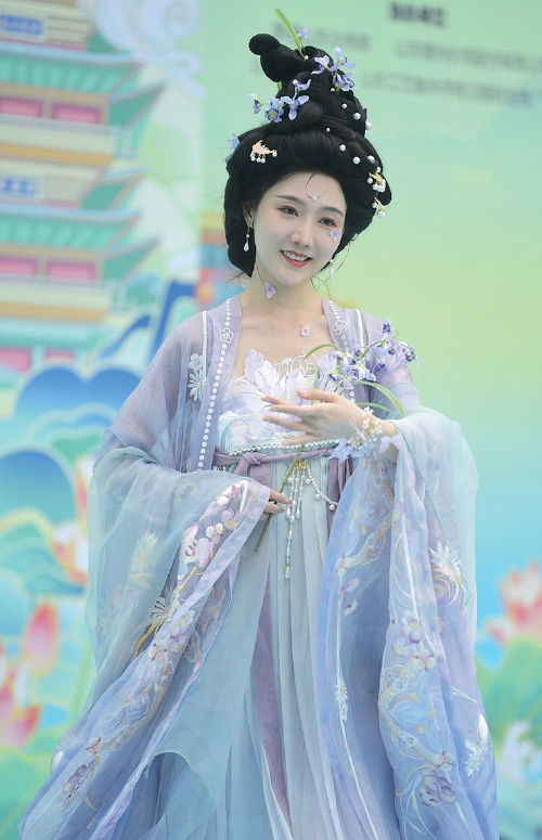 “十二花神”身着汉服手持鲜花亮相济南2024花朝节。(崔健 摄)