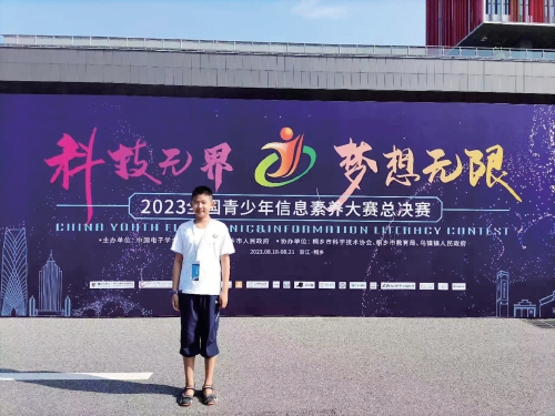 学习编程3年的 他,从 最 初 的“技术小白”已蜕变成了学校老师的得力助手,先后多次在全国、省市的信息科技类比赛中取得佳绩。去年8月,他还在带教老师杨玚的指导下,获得了2023全国青少年信息素养大赛总决赛一等奖的好成绩。