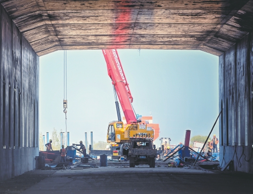 为了确保输电线路大动脉畅通和高铁的安全运营,经过专家评审论证,在特高压输电线路下方采用增设棚洞遮护的方案。该棚洞为矩形箱型结构,设计为现浇施工,长139米,宽14米,高11.54米,基础采用直径1米钻孔灌注桩,共计46根。棚洞施工的顺利完成,不仅有效保障了特高压电力设备的安全稳定运行,也为同类施工积累了经验。(郭尧 摄)
