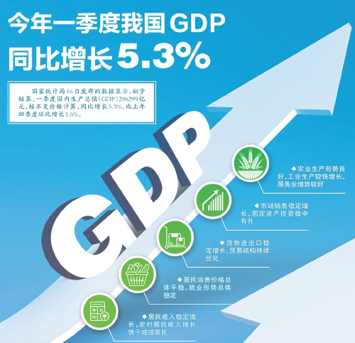 今年一季度我国GDP同比增长5.3%
