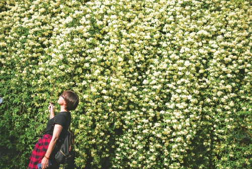 4月18日,济南最高气温上升至30℃,趵突泉公园沧园内的木香花迎风盛开,犹如花海瀑布,花香四溢,成为景区内一道亮丽风景,吸引众多游客前来打卡拍照。