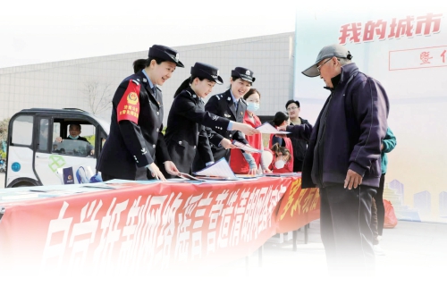 给群众介绍公安业务。以民意为标尺公正廉洁执法