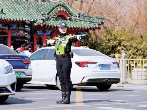 疏导交通。(本报记者杨晨 通讯员 解旺 摄)