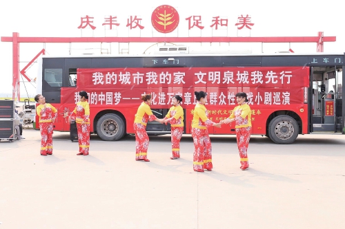 “群众在哪里,文明实践就延伸到哪里。”章丘区“文明实践大篷车”进村(社区)活动,依托各新时代文明实践所、站、文化广场等阵地,利用赶大集和重要节日节点,集中开展“宣”“送”“展”活动。