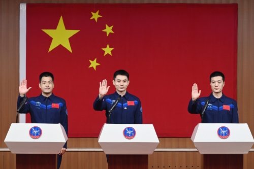 据新华社酒泉4月24日电 我国瞄准4月25日20时59分发射神舟十八号载人飞船,飞行乘组由航天员叶光富、李聪、李广苏组成。