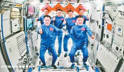 后续,两个航天员乘组将在空间站进行在轨轮换。其间,6名航天员将共同在空间站工作生活约5天时间,完成各项既定工作。 (新华社发)