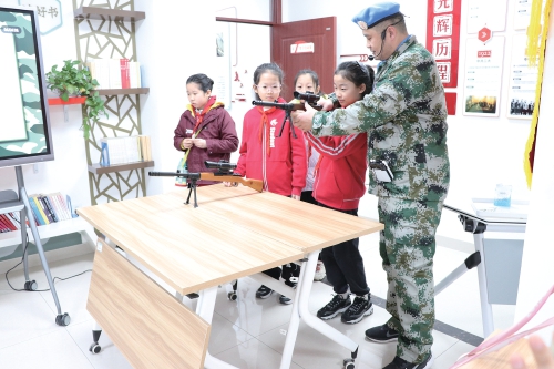 王玉国为学生讲解军事知识。