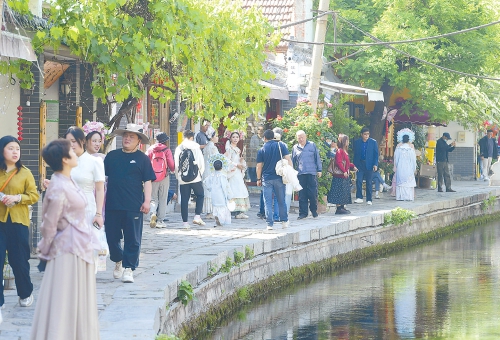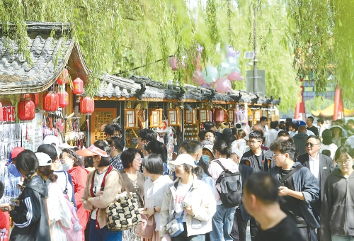 5月1日,曲水亭街等老街巷人头攒动,迎来客流高峰。(本报记者 崔健 摄)