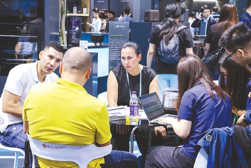 境外采购商在第135届广交会美的集团的展位洽谈。(新华社发)