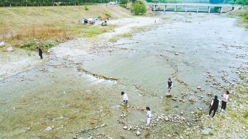 5月5日,在玉符河中游的催马村附近,河水通过桥下的孔洞流出,形成层层叠叠的小瀑布。春末夏初,随着雨水增多,干旱的河道内流水潺潺。截至目前,玉符河从源头到中游的罗尔庄村已经全面恢复河水流淌。 (王锋 摄)