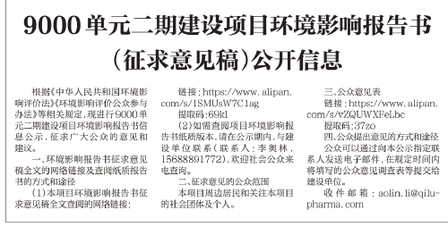 9000单元二期建设项目环境影响报告书(征求意见稿)公开信息