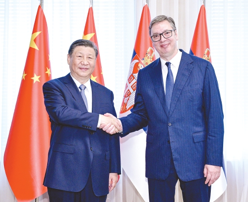 5月的贝尔格莱德,阳光明媚。塞尔维亚大厦前,中塞两国国旗迎风飘扬,仪仗队威武雄壮。习近平和夫人彭丽媛乘车抵达时,塞尔维亚总统武契奇和夫人塔玛拉在下车处热情迎接。