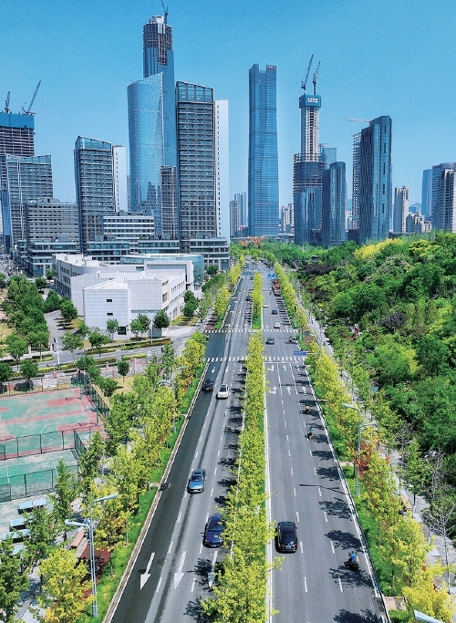 5月8日,济南中央商务区新泺大街沿线栽种的娜塔栎萌发新芽,一片绿意盎然,在初夏时节为“钢筋水泥”林立的中央商务区增添了一抹夏天的色彩。据了解,娜塔栎是济南中央商务区栽种的首个色叶品种,在我国北方地区也属于首次大规模引进。(王汗冰 摄)