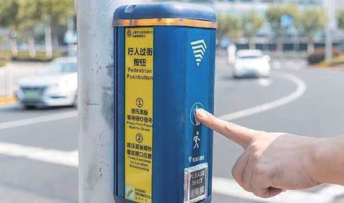 通过语音提示系统引导视觉障碍者安全通行的音响装置。人行横道的安全岛应能使轮椅通行。