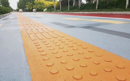 在人行道上或其他场所铺设的一种固定形态的地面砖,使视觉障碍者产生盲杖触觉及脚感,引导视觉障碍者向前行走和辨别方向以到达目的地的通道,分为行进盲道和提示盲道两种。行进盲道表面呈条状形,使视觉障碍者通过盲杖的触觉和脚感,指引视觉障碍者可直接向正前方继续行走的盲道;提示盲道表面呈圆点形,用在盲道的起点处、拐弯处、终点处和表示服务设施的位置以及提示视觉障碍者前方将有不安全或危险状态等,具有提醒注意作用的盲道。