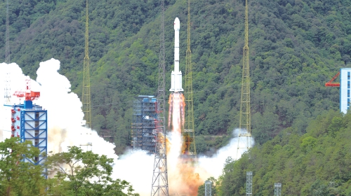 5月9日9时43分,我国在西昌卫星发射中心使用长征三号乙运载火箭,成功将智慧天网一号01星发射升空,卫星顺利进入预定轨道。 (新华社发)