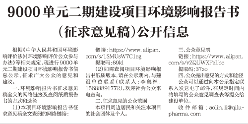 9000单元二期建设项目环境影响报告书(征求意见稿)公开信息