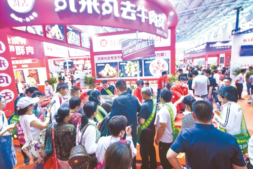 博览会汇聚了来自全国各地的酒类、食品饮料、火锅餐饮食材、食品包装配套及机械设备等千余家企业,带来了上万种食品进行展示,部分食品现场烹饪供参观者品尝。博览会上,火锅涮品及特色食材,机械设备及配套等一应俱全,满足了火锅店铺经营者的一站式采购需求。(王锋 摄)