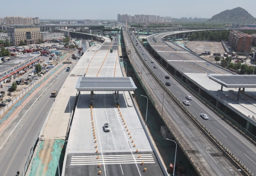 G104京岚线济南黄河公路大桥工程作为连通济南市主城区和起步区的重要通道,经改建零点立交接济广高速,高架桥向北延伸。据了解,济南零点立交改造后为涡轮型枢纽互通,主线设置为济广高速主线桥和黄河南岸主线桥,共设置14条匝道,项目建成后将实现高速公路、城市快速路和城市主干路之间的交通转换,有效解决城市立交出入口常见的车辆交织问题。 (本报记者 崔健 摄)